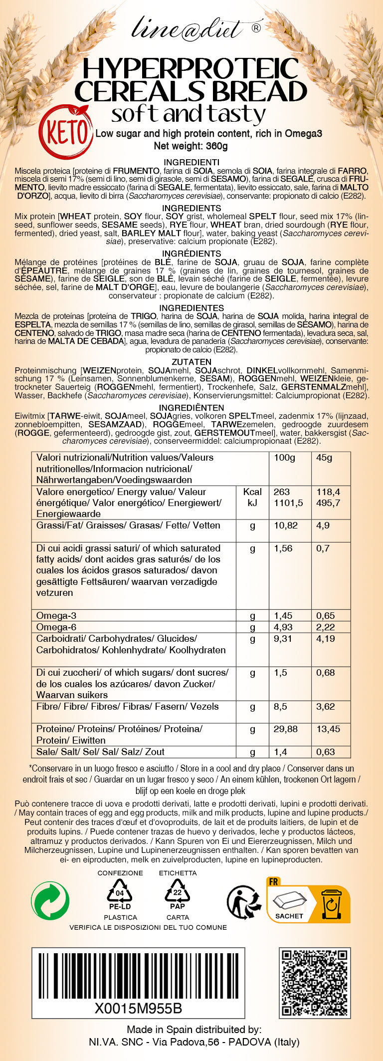🥪 Pane bauletto ai cereali KETO – confezione da 360g con 16 fette già tagliate, pronte da farcire e portare via, per i tuoi pranzi veloci ma bilanciati